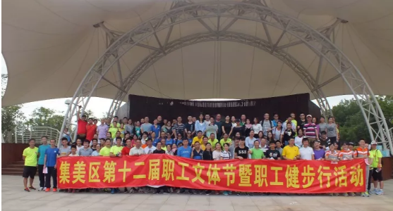 为庆祝中国共产党第十九次全国代表大会胜利召开,营造喜庆欢乐、文明向上的社会环境和浓厚文化氛围,引导广大职工树立良好的精神风貌。11月11日上午9点,集美区总工会在园博苑举办第十二届职工文体节暨职工健步行活动,辖区40家企业共120名职工参加了活动。